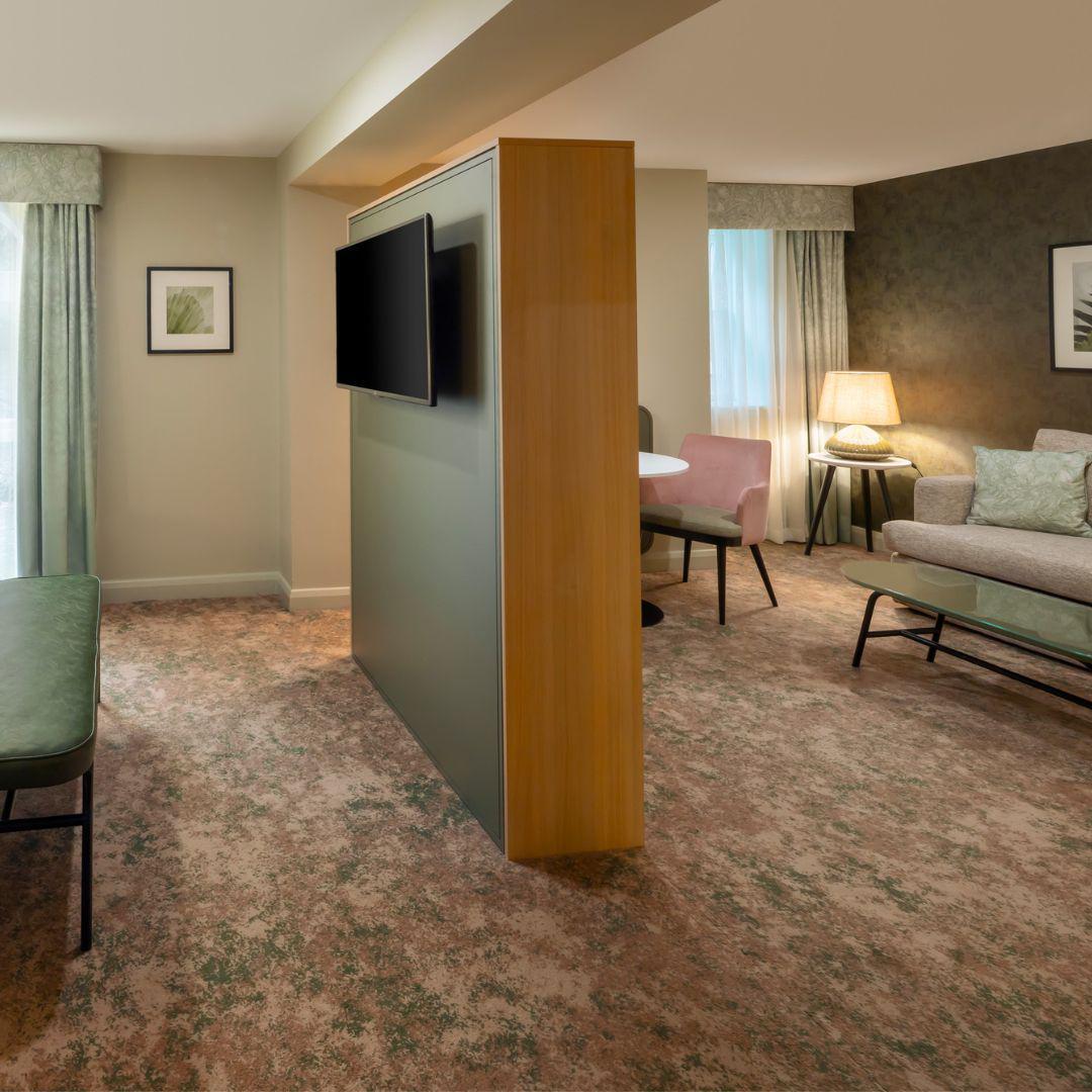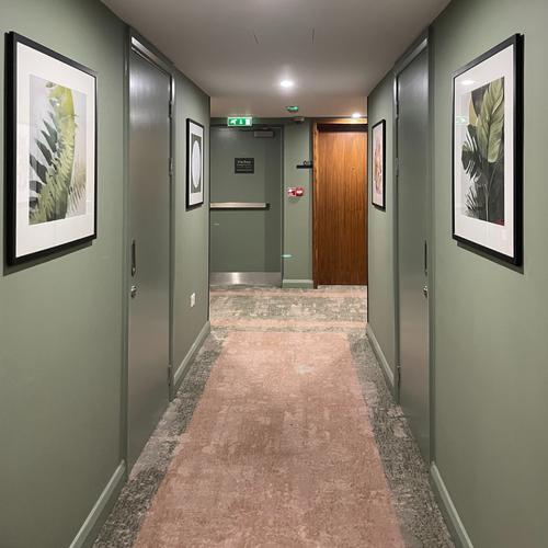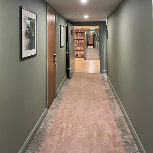 The Doubletree by Hilton Hotel and Spa Chester is an 18th Century manor house on the outskirts of historic Chester. Brintons supplied custom Axminster carpets for the bedrooms and corridors as part of a recent refurbishment project. The design and colour palette was selected to complement the artwork that acknowledged the area’s botanical heritage, including nods to orchids and alpine plants that were once cultivated locally. The carpets and artwork paired together to create spaces that offer a luxurious, relaxing, and welcoming environment for guests.