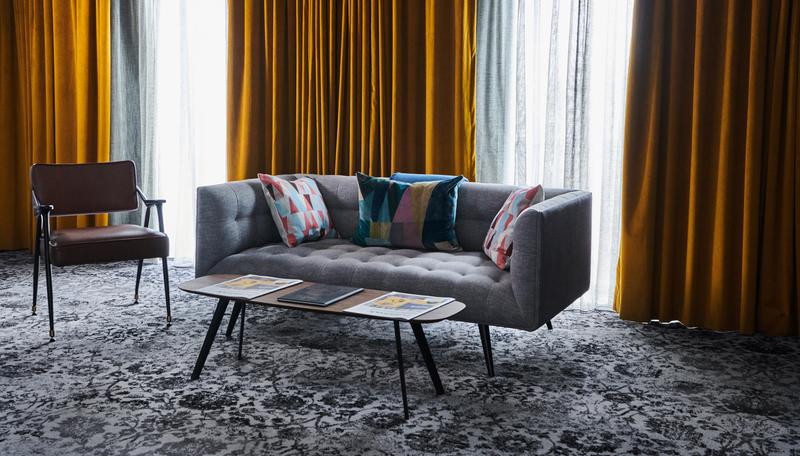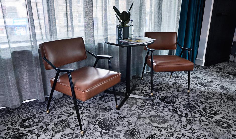 Brintons bespoke Persian style carpets are seen throughout the hotel and really enhance the interiors. I particularly like the way in which the designs created for the function room and corridor carpets incorporate transport networks of Manchester and Brooklyn, making it truly unique to the hotel.