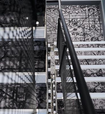 Interior Designer Oliver Redfern of Squid.inc worked with Brintons Senior Creative Designer Jane Bradley-Bain to create bespoke carpets for key public areas and guest-rooms. The Persian style design creates a modern antique feel, adding plenty of interest underfoot. A steel grey and neutral colour palette was selected to complement the cool contemporary interiors which are decorated with illustrations of New York street scenes.